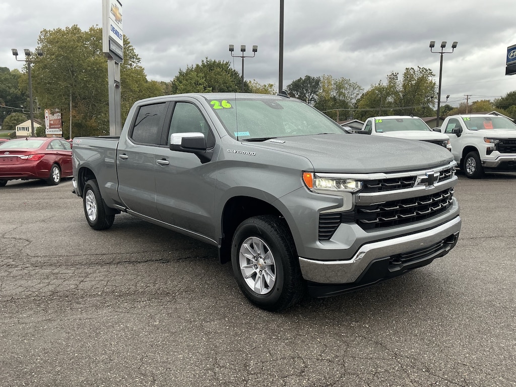 Built for long days and bold impressions, our diesel-powered 2026 Chevrolet Silverado 1500 LT Crew Cab 4X4 with the Convenience Pack in Sterling Gray Metallic delivers smooth capability, clean looks, and smart value for business owners on the go. Powered by a TurboCharged 3.0 Liter DuraMax Diesel 6 Cylinder supplying 305hp and 495lb-ft of torque to a 10 Speed Automatic transmission. An automatic locking rear differential helps you get a grip on your next challenge, as this Four Wheel Drive truck scores nearly 29mpg on the highway. Designed for busy owners like you, our Silverado 1500 looks fantastic with high-intensity LED headlamps, alloy wheels, chrome accents, a power lock/release EZ Lift tailgate, and LED bed lighting.