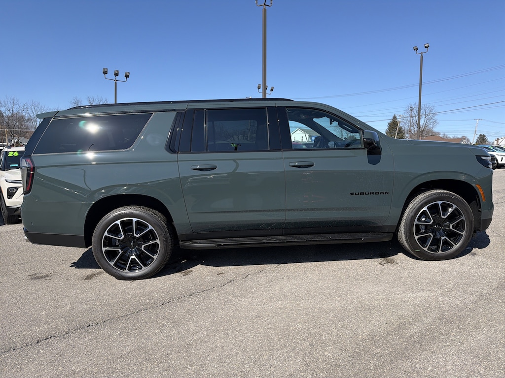 Built to assert itself, our 2026 Chevrolet Suburban RST 4WD with the Comfort Pack in Cypress Gray channels robust low-end torque and sport-inspired styling into a full-size machine that moves with authority. Motivated by a 5.3 Liter V8 delivering 355hp to a 10 Speed Automatic transmission. Features like a limited-slip rear differential and AutoTrac transfer case complement that strength, and this Four Wheel Drive SUV achieves nearly 26mpg on the highway. Standing proud, our Suburban is ready for action with a monochromatic black grille, Black Ice accents, LED lighting, black assist steps, matching roof rails, a hands-free liftgate, panoramic sunroof, and 22-inch gloss-black wheels.