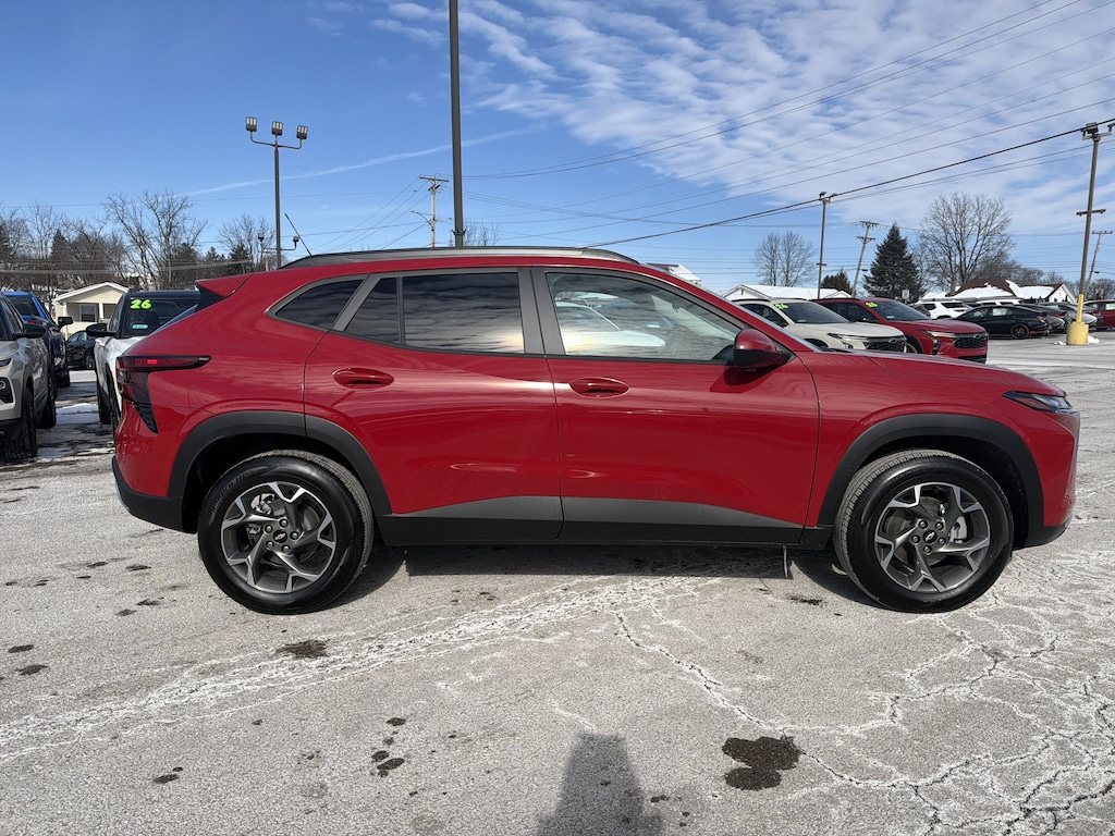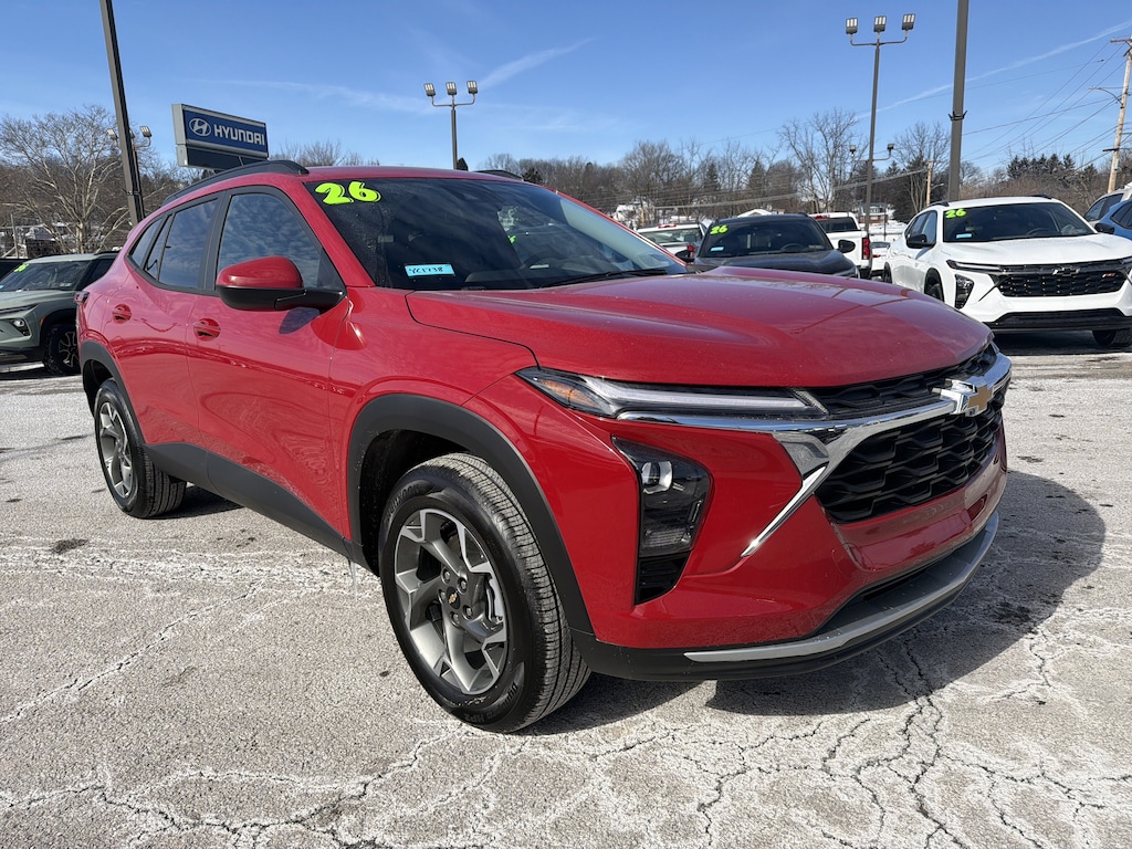 The smart choice for your lifestyle is our 2026 Chevrolet Trax LT with the Driver Confidence and Convenience Packs displayed in Crimson Metallic! Powered by a TurboCharged 1.2 Liter 3 Cylinder serving up 137hp to a 6 Speed Automatic transmission for living life at your own pace. Agile and responsive, this Front Wheel Drive SUV also sees nearly 32mpg on the highway with impressive fuel economy in town, too. Get ready to turn heads as you go by since our Trax shows off signature LED lighting, silver-painted bumper accents, roof rails, black nameplate and bowtie emblems, a rear spoiler, a front recovery hook, and stylish alloy wheels.