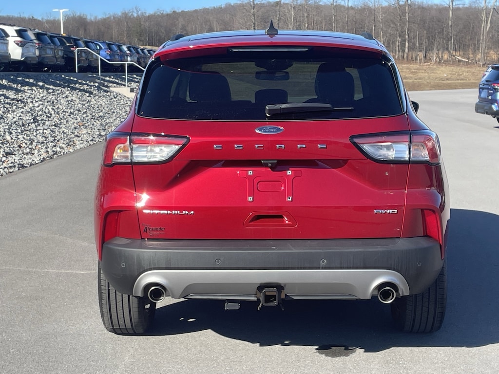 New Price! Red 2021 Ford Escape Titanium AWD 8-Speed Automatic EcoBoost 2.0L I4 GTDi DOHC Turbocharged VCT Escape Titanium, 4D Sport Utility, EcoBoost 2.0L I4 GTDi DOHC Turbocharged VCT, 8-Speed Automatic, AWD, Red, Ebony Leather, Black Roof-Rack Side Rails, Chrome 5-Bar Upper Grille w/Chrome Surround, Class II Trailer Tow Package, Equipment Group 401A, Front & Rear Floor Mats, Head-Up Display, Heated Leather-Trimmed Front Sport Contour Seats, Leather Wrapped Steering Wheel, Panoramic Vista Roof, Titanium Elite Package, Wheels: 19" Luster Nickel-Painted Aluminum, Wireless Charging Pad.