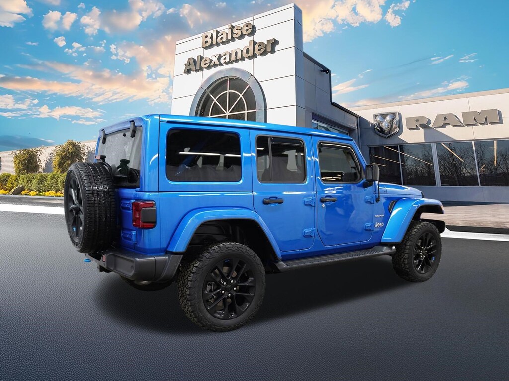 Hydro Blue Pearl Coat 2023 Jeep Wrangler Sahara 4xe 4WD 8-Speed Automatic 2.0L I4 DOHC Wrangler Sahara 4xe, 4D Sport Utility, 2.0L I4 DOHC, 8-Speed Automatic, 4WD, Hydro Blue Pearl Coat, Dark Saddle/Black, Adaptive Cruise Control w/Stop, Advanced Brake Assist, Advanced Safety Group, Auto High Beam Headlamp Control, Blind Spot & Cross Path Detection, Cold Weather Group, Full Speed Forward Collision Warning Plus, Heated Front Seats, Heated Steering Wheel, Navigation System, ParkSense Rear Park Assist System, Quick Order Package 29P Sahara, Remote Start System, Safety Group.